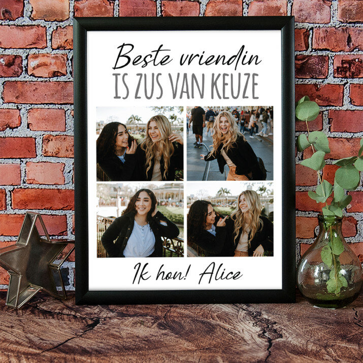 Een prachtige compositie van jouw foto’s, gecombineerd met een paar woorden recht uit het hart en persoonlijke onderschriften. Het perfecte cadeau voor iemand met wie je veel herinneringen deelt. Kies jullie favoriete foto’s van de mooiste momenten samen, en wij maken er een blijvende herinnering van. Daarnaast is het ook een originele en sfeervolle decoratie voor in huis.UITVOERING