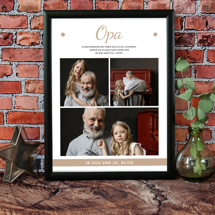 Een prachtige compositie van jouw foto’s, gecombineerd met een paar woorden recht uit het hart en persoonlijke onderschriften. Het perfecte cadeau voor iemand met wie je veel herinneringen deelt. Kies jullie favoriete foto’s van de mooiste momenten samen, en wij maken er een blijvende herinnering van. Daarnaast is het ook een originele en sfeervolle decoratie voor in huis.UITVOERING