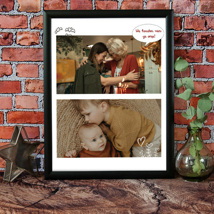Een prachtige compositie van jouw foto’s, gecombineerd met een paar woorden recht uit het hart en persoonlijke onderschriften. Het perfecte cadeau voor iemand met wie je veel herinneringen deelt. Kies jullie favoriete foto’s van de mooiste momenten samen, en wij maken er een blijvende herinnering van. Daarnaast is het ook een originele en sfeervolle decoratie voor in huis.UITVOERING