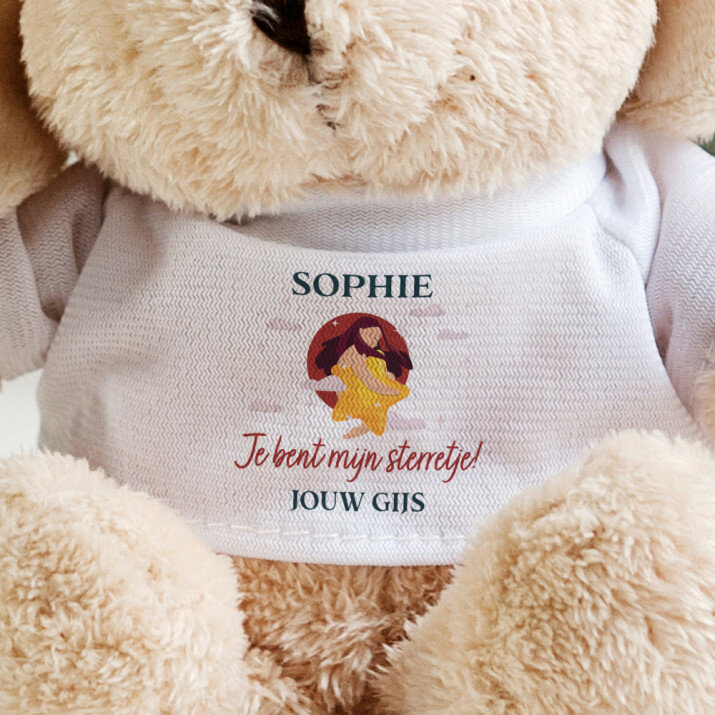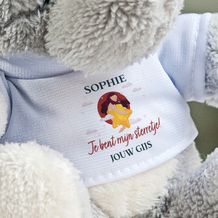 In t-shirtjes met jouw opdruk geklede zachte en aangename knuffels zijn gemaakt van pluche. T-shirt van polyester. De opdruk is duurzaam en full-color, waardoor de kleuren levendig en helder zijn! Beschikbare soorten knuffels:- Olifantje - hoogte 16 cm
