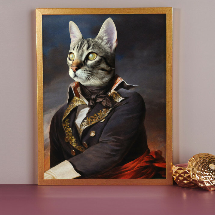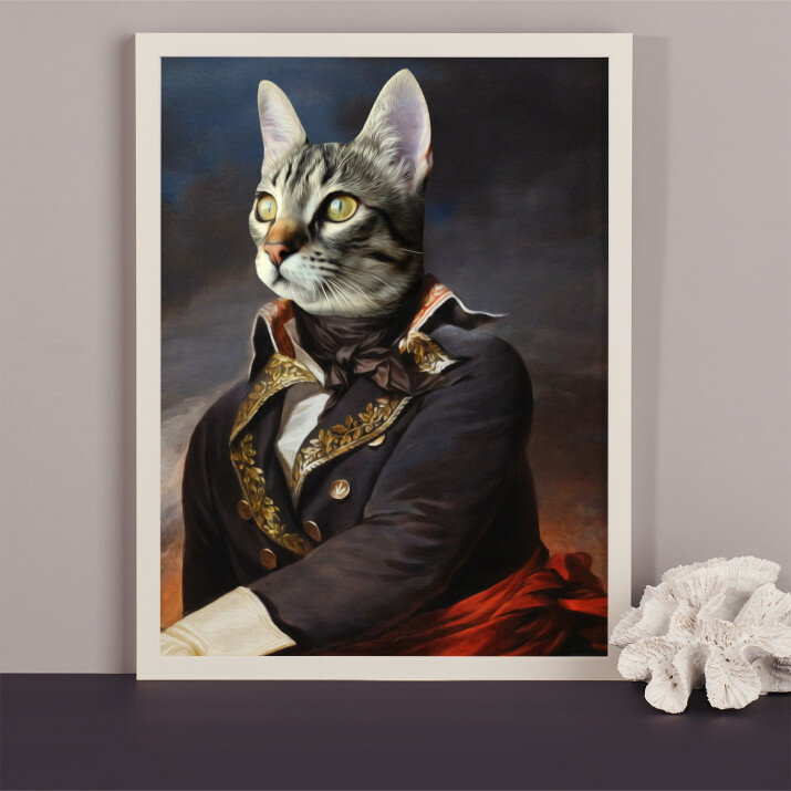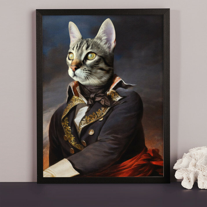 Dit koninklijke portret van mijn huisdier is een waar kunstwerk. Het ziet er prachtig uit aan de muur en weerspiegelt het karakter van mijn huisdier.