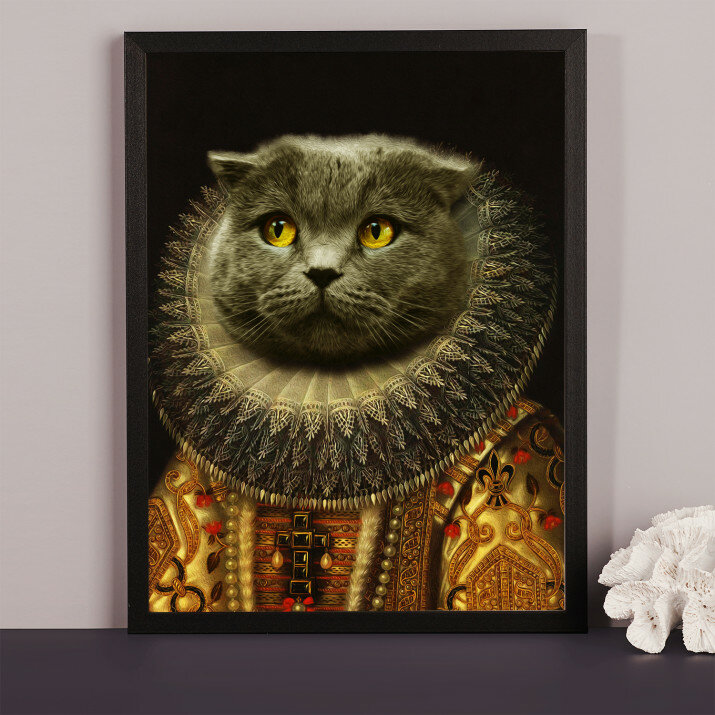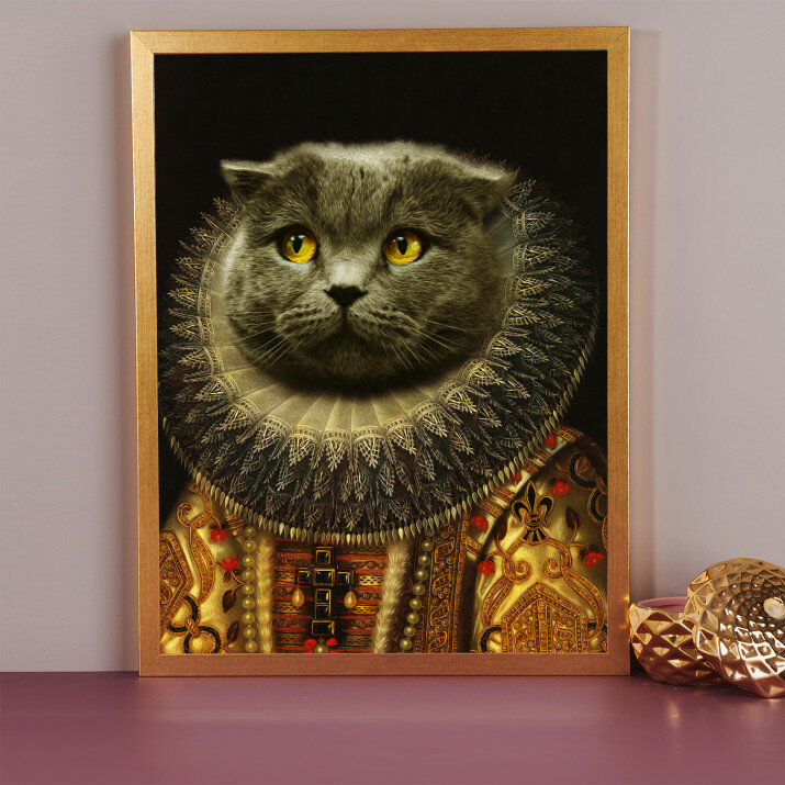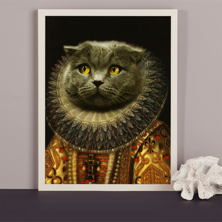 Dit koninklijke portret van mijn huisdier is een waar kunstwerk. Het ziet er prachtig uit aan de muur en weerspiegelt het karakter van mijn huisdier.