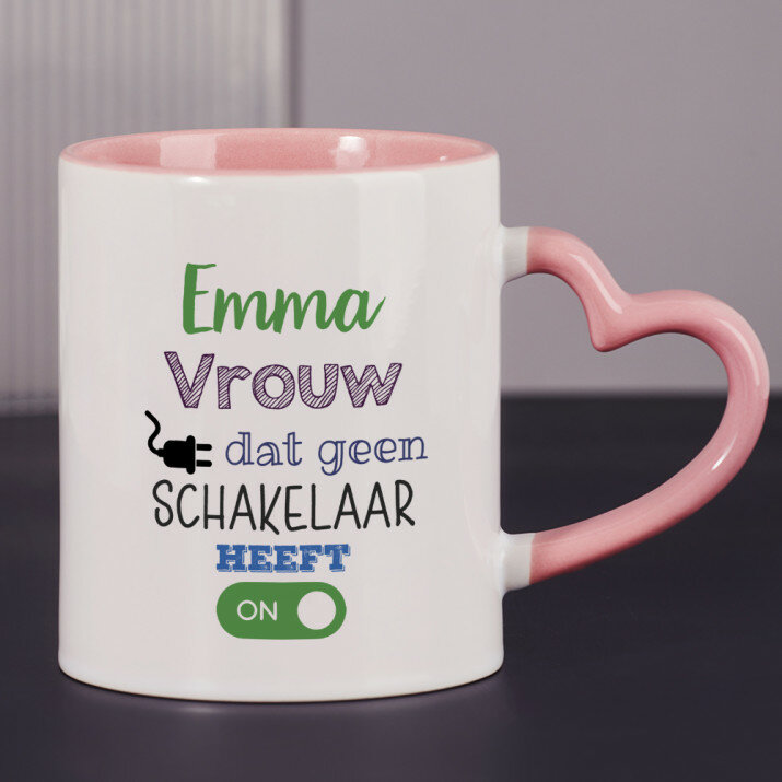 Er zijn ook mokken met een hartvormig handvat en een roze binnenkant, met een inhoud van 330 ml