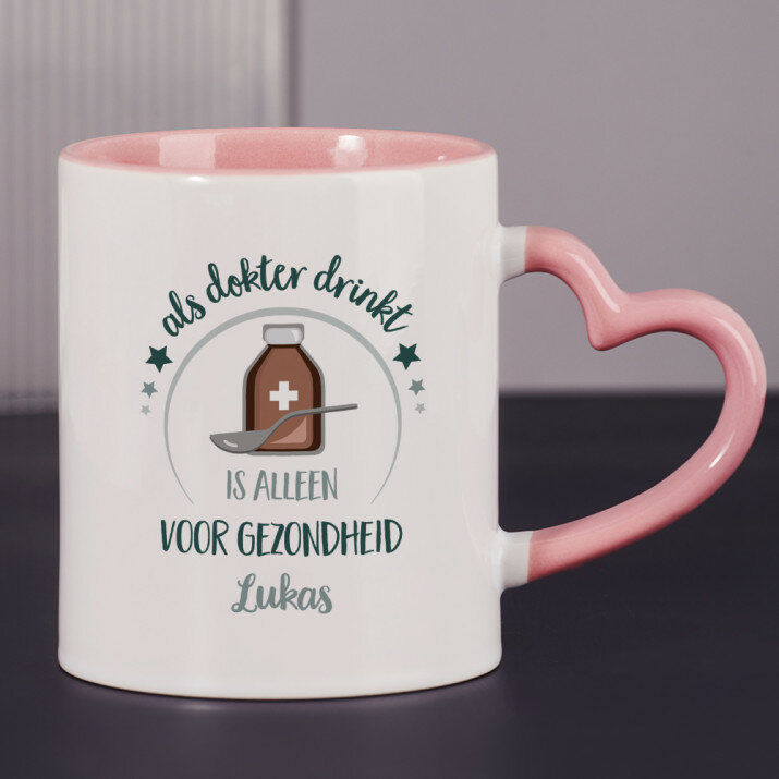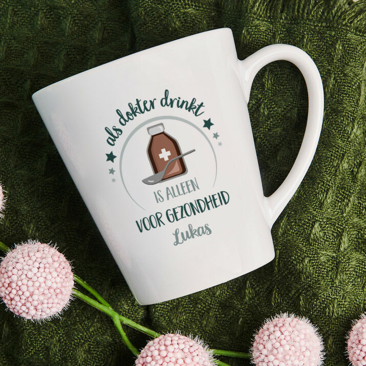 Een gepersonaliseerde mok met de inscriptie 'Hoe een dokter drinkt' is een leuk cadeau voor iedere dokter. Nummer 1 op de lijst met cadeaus voor zorgpersoneel.