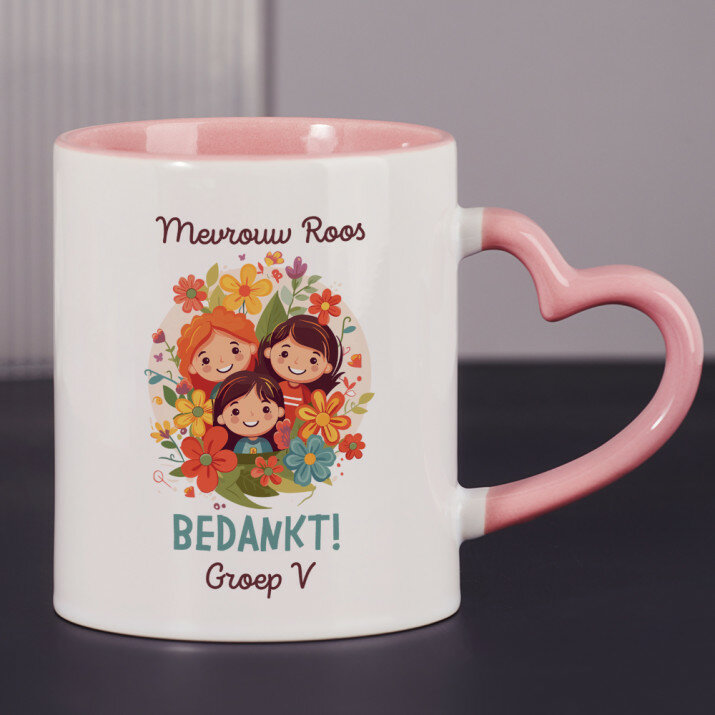 Er zijn ook mokken met een hartvormig handvat en een roze binnenkant, met een inhoud van 330 ml