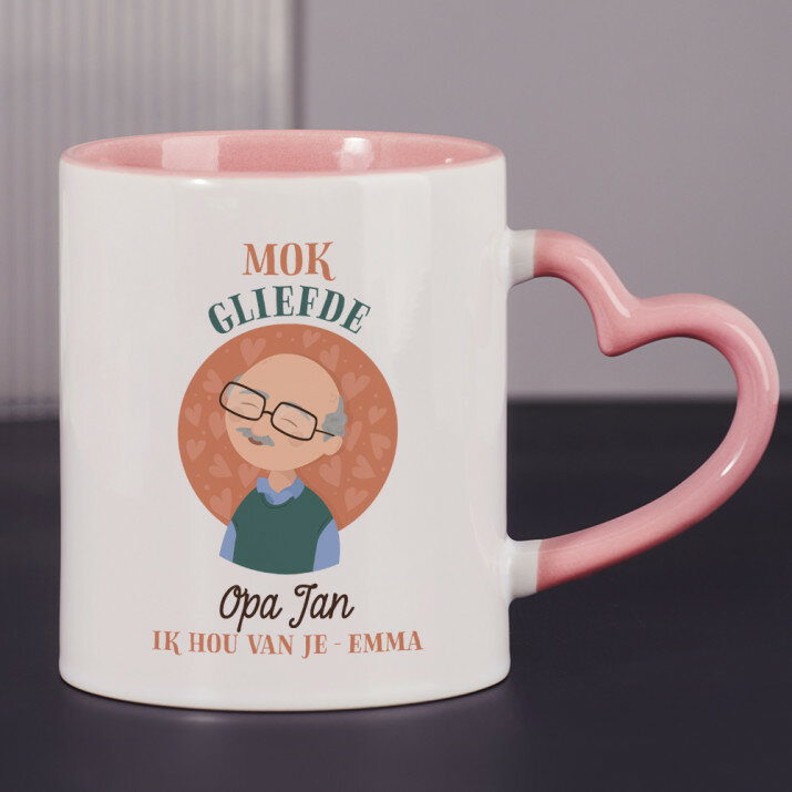 Er zijn ook mokken met een hartvormig handvat en een roze binnenkant, met een inhoud van 330 ml
