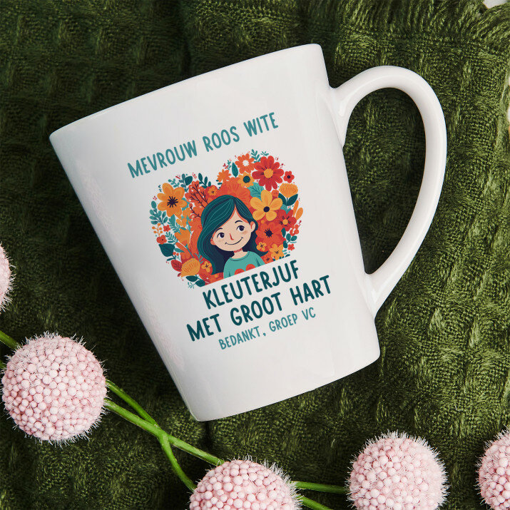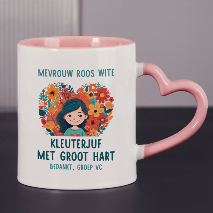 Er zijn ook mokken met een hartvormig handvat en een roze binnenkant, met een inhoud van 330 ml