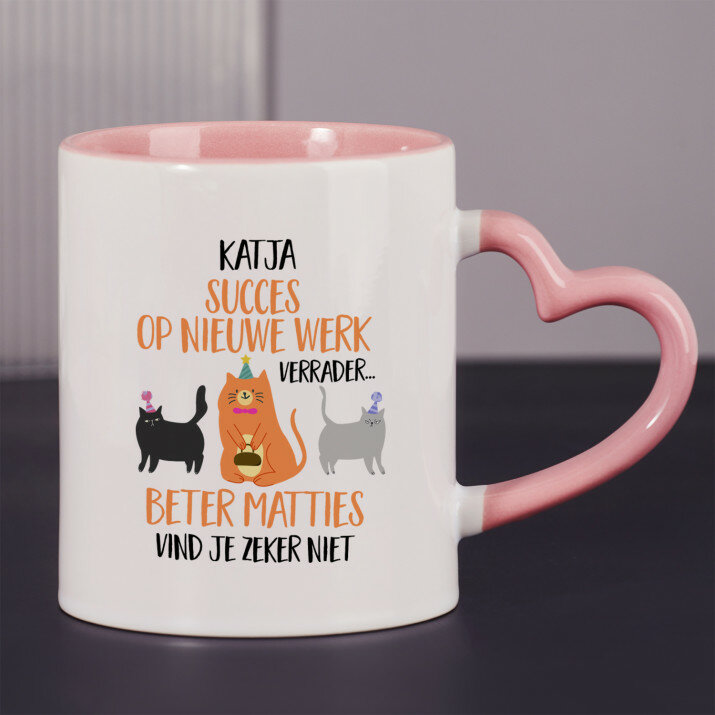 Er zijn ook mokken met een hartvormig handvat en een roze binnenkant, met een inhoud van 330 ml