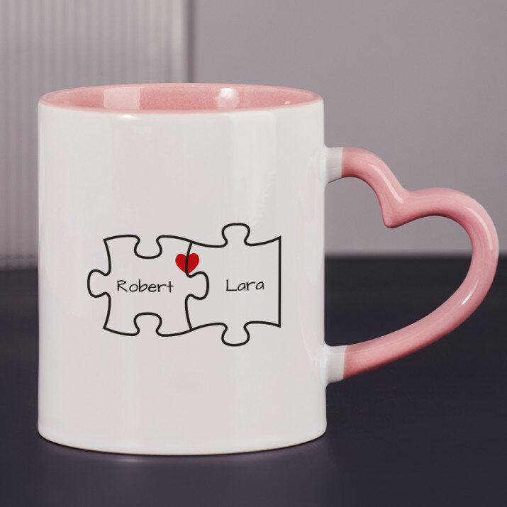 Er zijn ook mokken met een hartvormig handvat en een roze binnenkant, met een inhoud van 330 ml