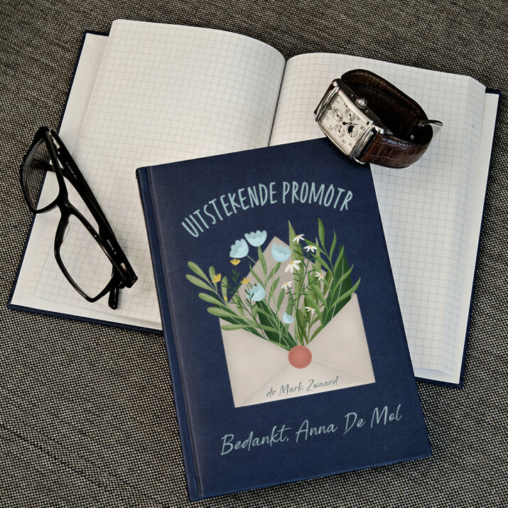 Notitieboek in A5-formaat met hoogwaardige UV-bedrukking.