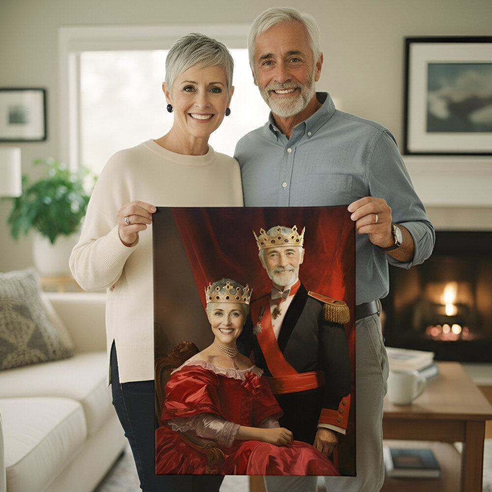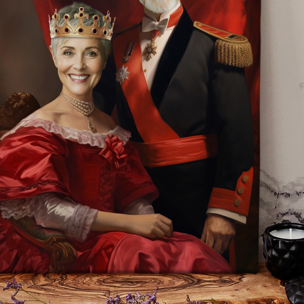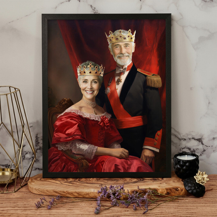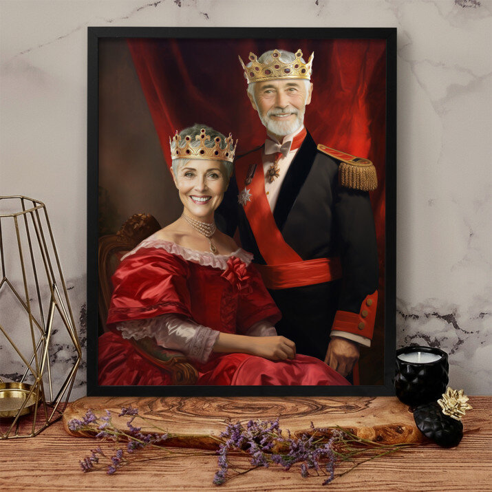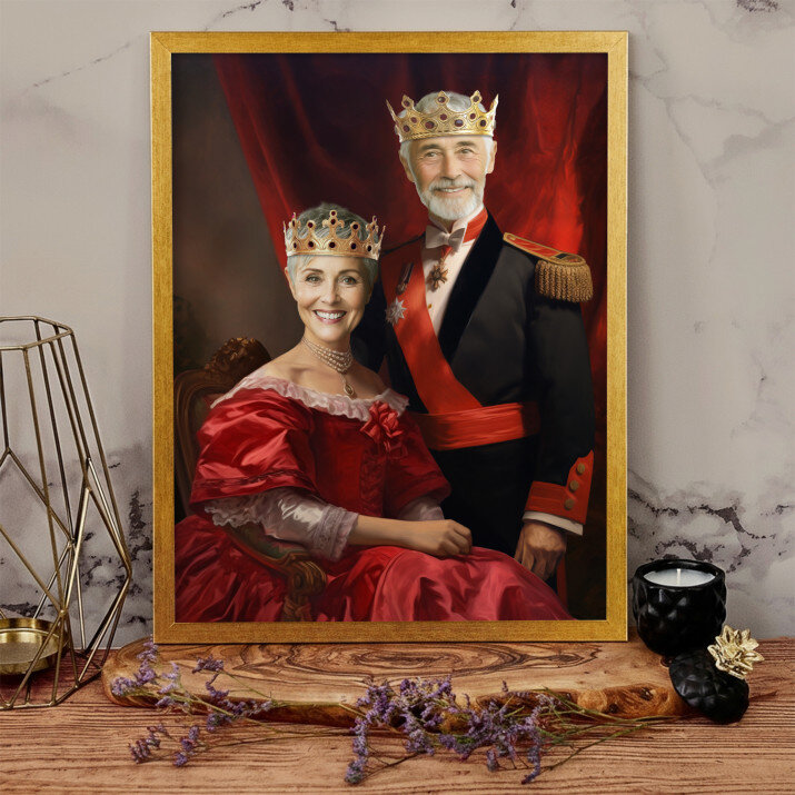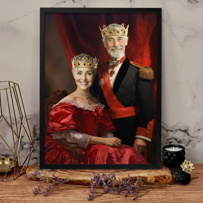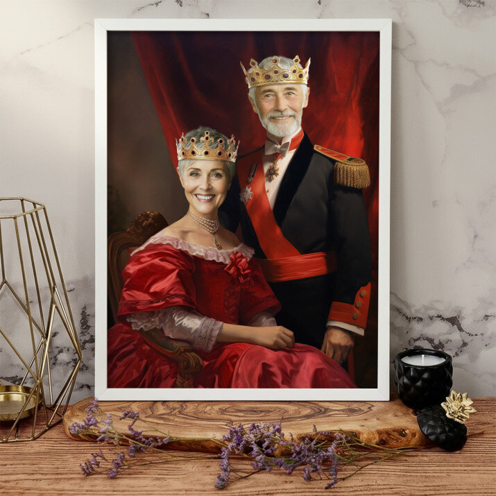 Ik ben heel blij met dit schilderij op canvas. Het koninklijk paar is niet alleen een decoratie, het is ook een symbool van elegantie en prestige.
