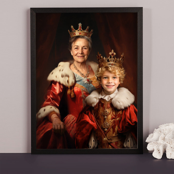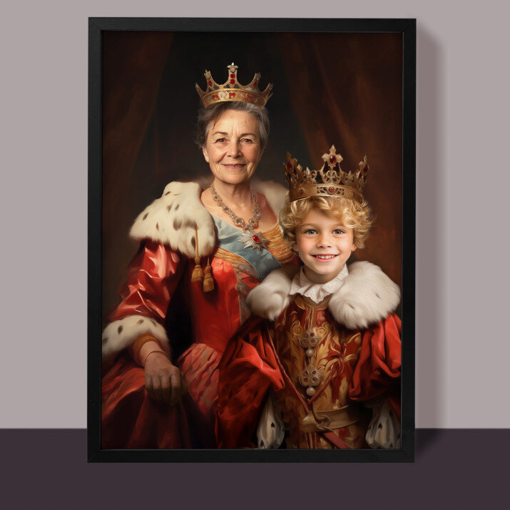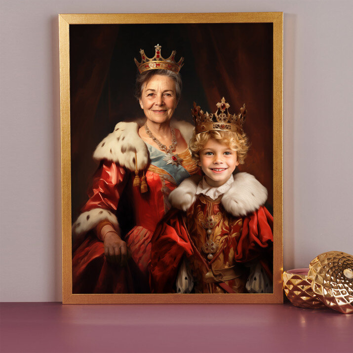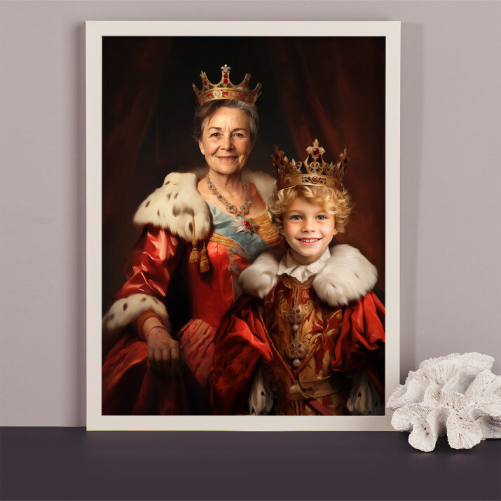 Ik ben heel blij met dit schilderij op canvas. Het koninklijk paar is niet alleen een decoratie, het is ook een symbool van elegantie en prestige.
