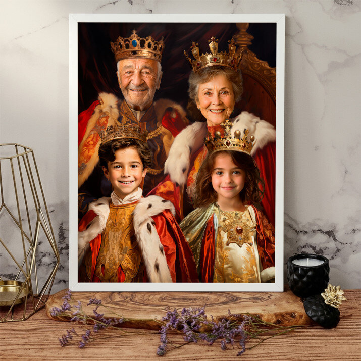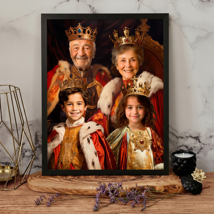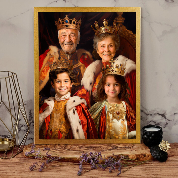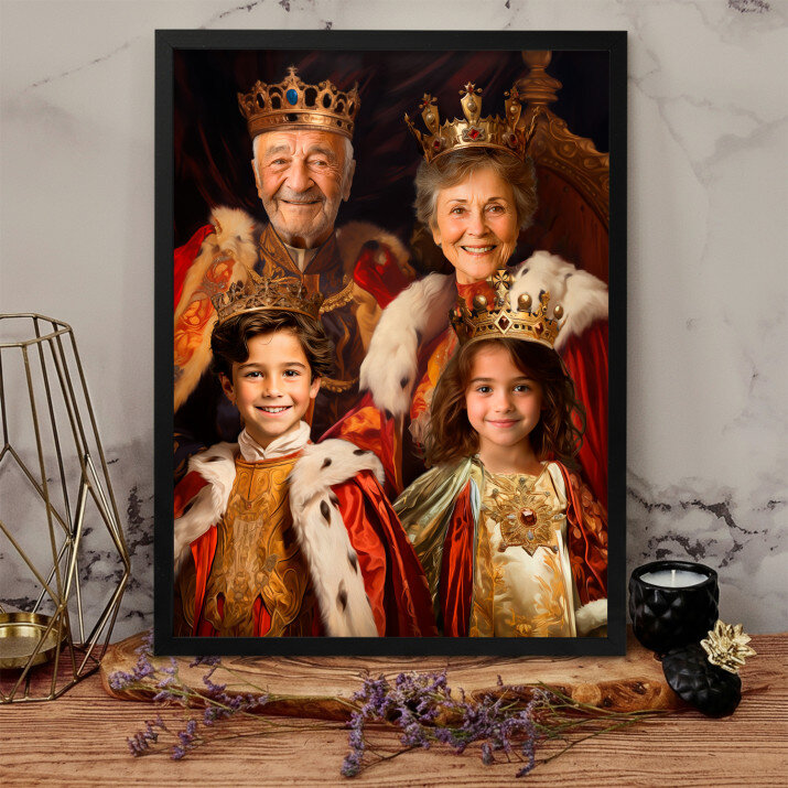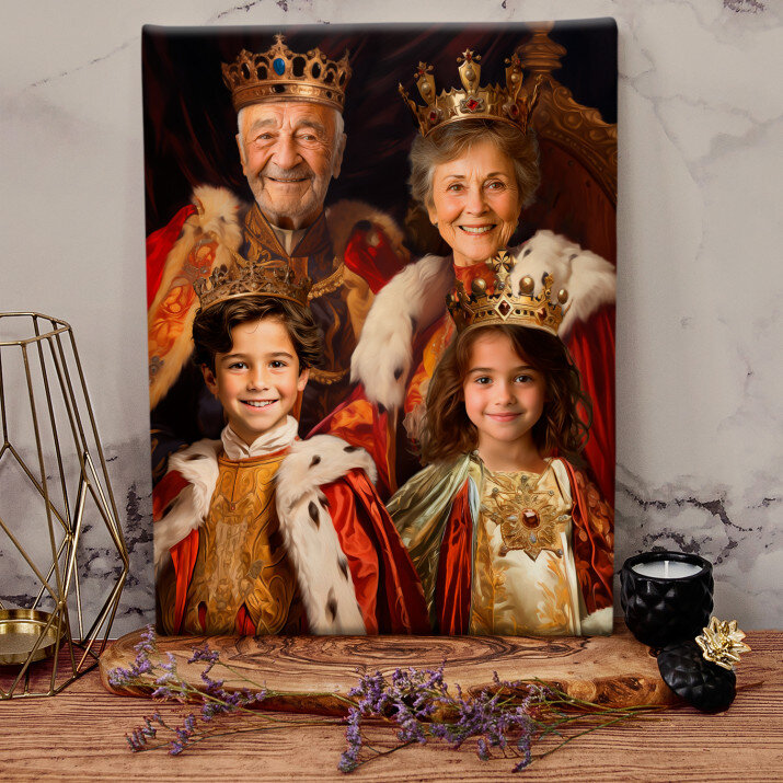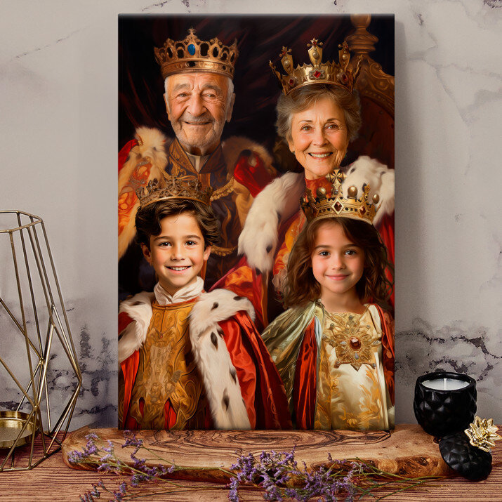 Dit is een perfecte manier om de stijl van het interieur te benadrukken. Een koninklijk portret op canvas is een prachtige decoratie die de aandacht trekt.