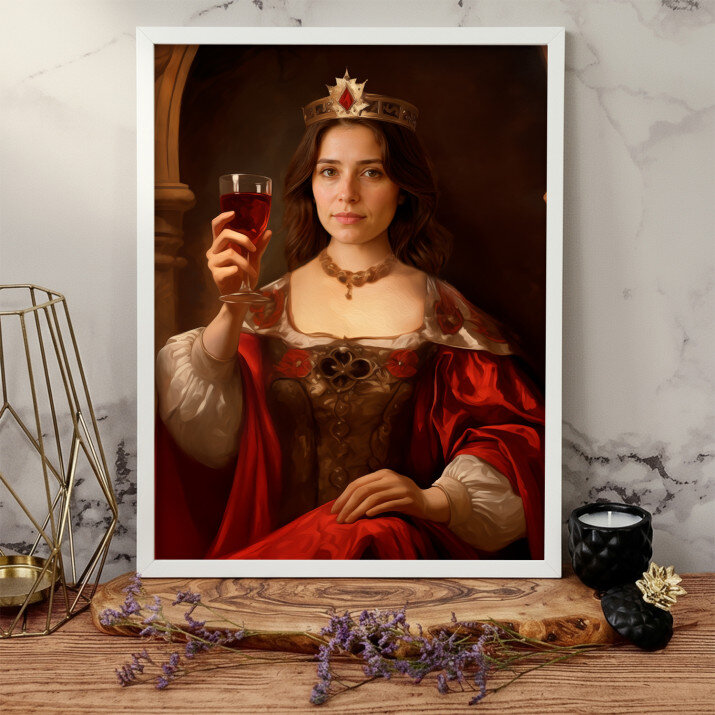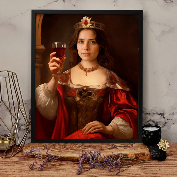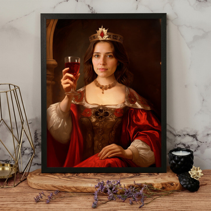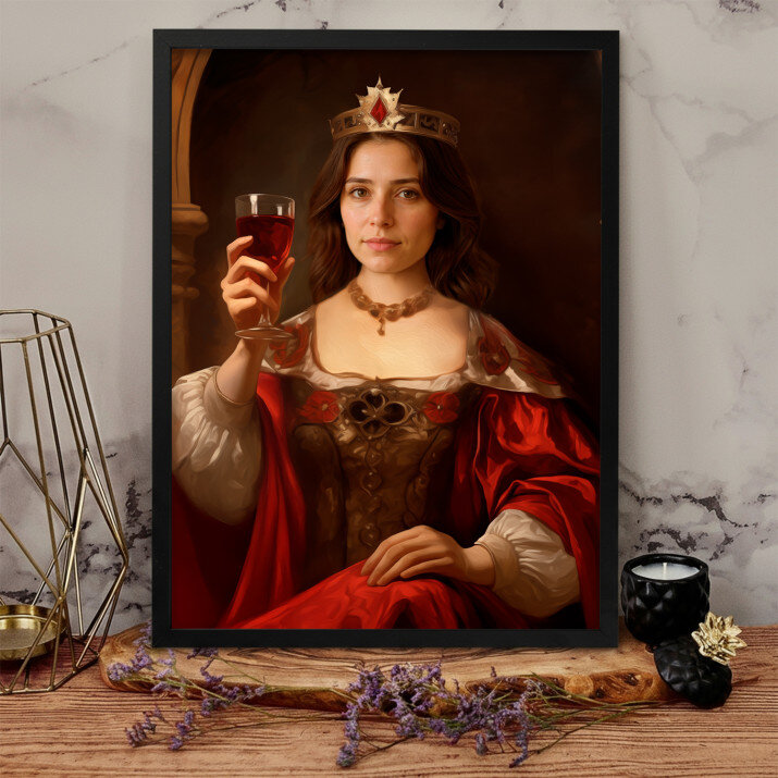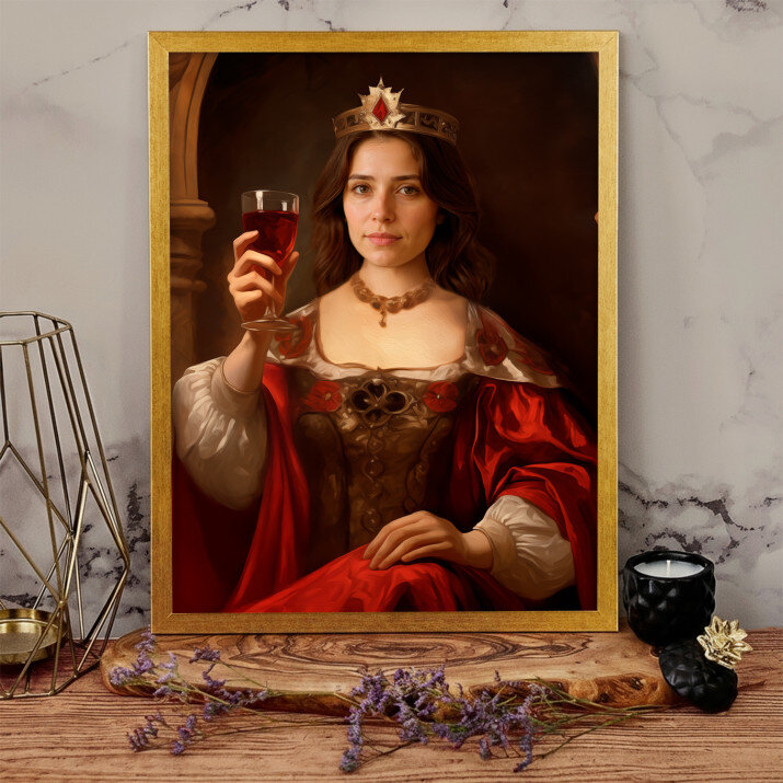 Dit is een perfecte manier om de stijl van het interieur te benadrukken. Een koninklijk portret op canvas is een prachtige decoratie die de aandacht trekt.