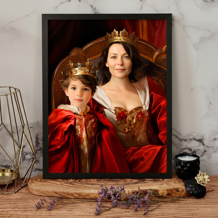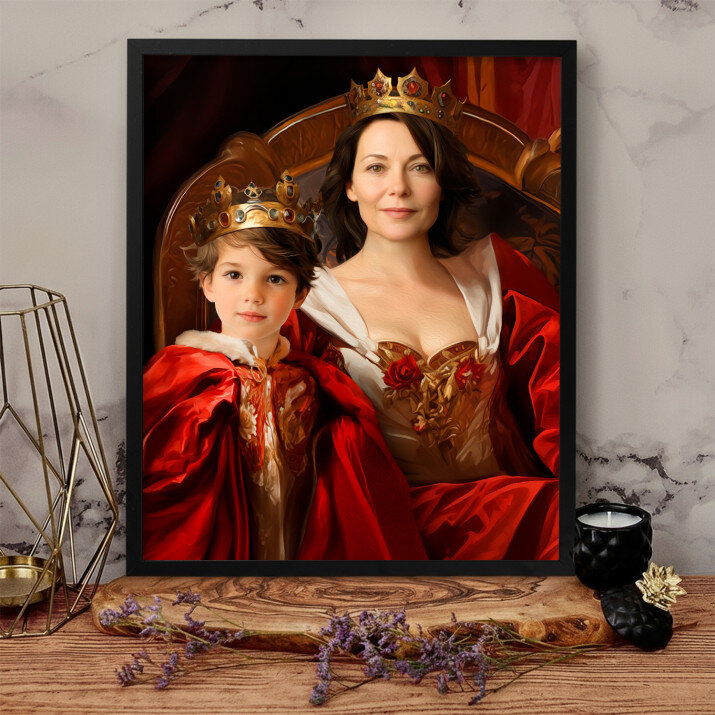 Ik ben heel blij met dit schilderij op canvas. Het koninklijk paar is niet alleen een decoratie, het is ook een symbool van elegantie en prestige.