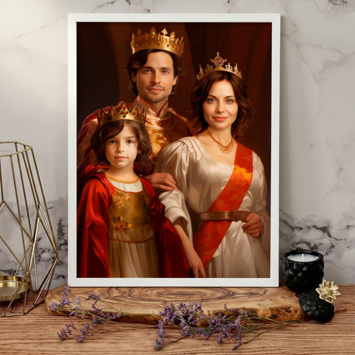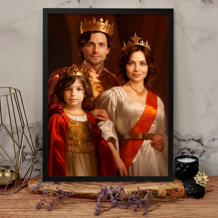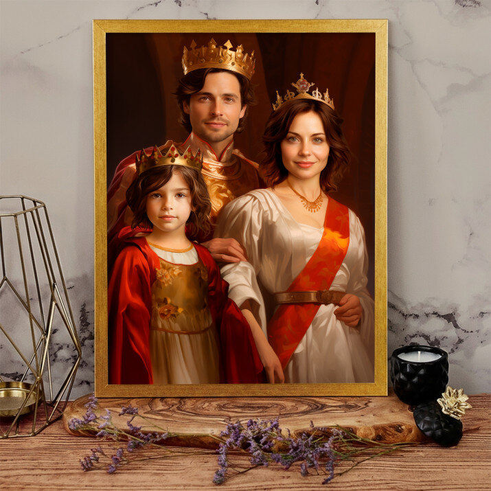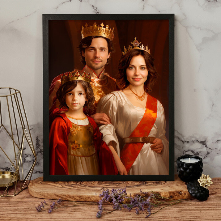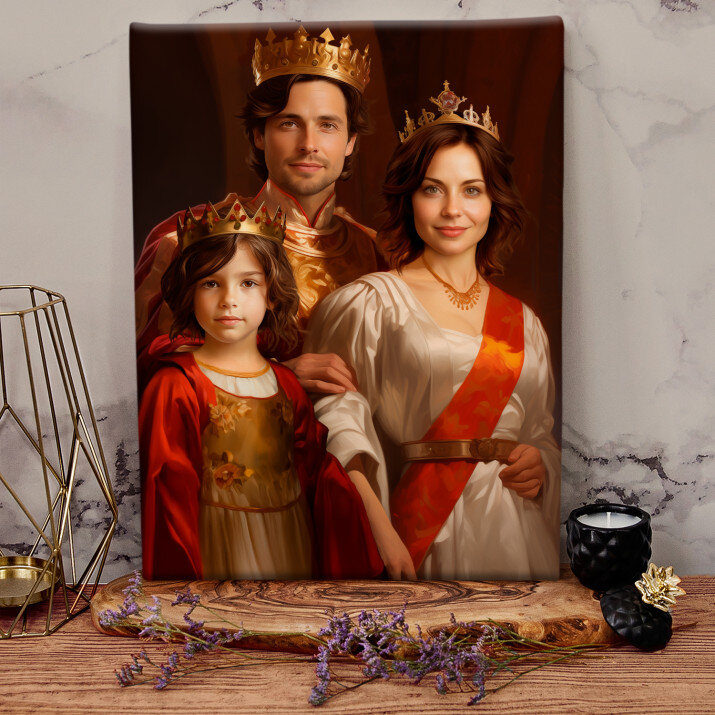 Dit is een perfecte manier om de stijl van het interieur te benadrukken. Een koninklijk portret op canvas is een prachtige decoratie die de aandacht trekt.