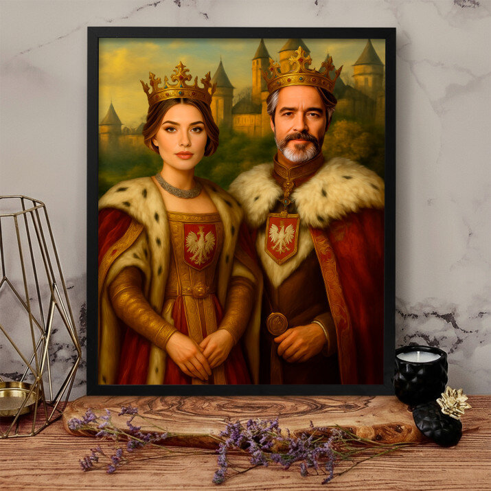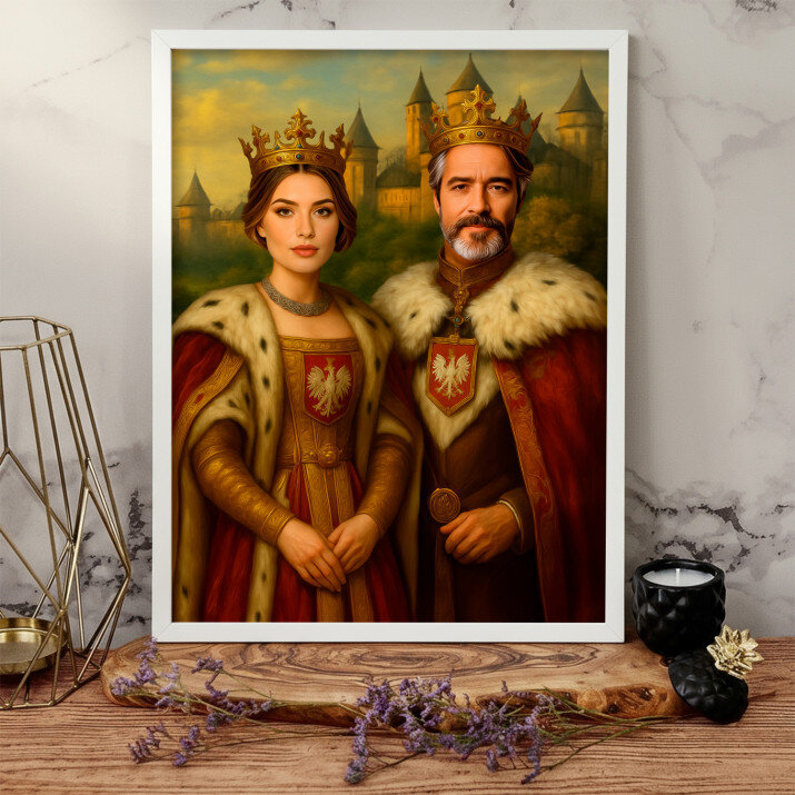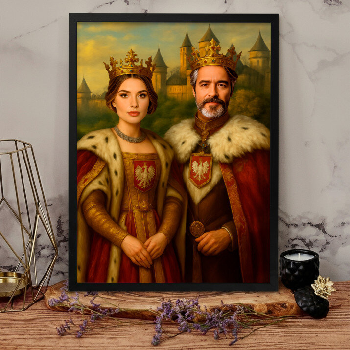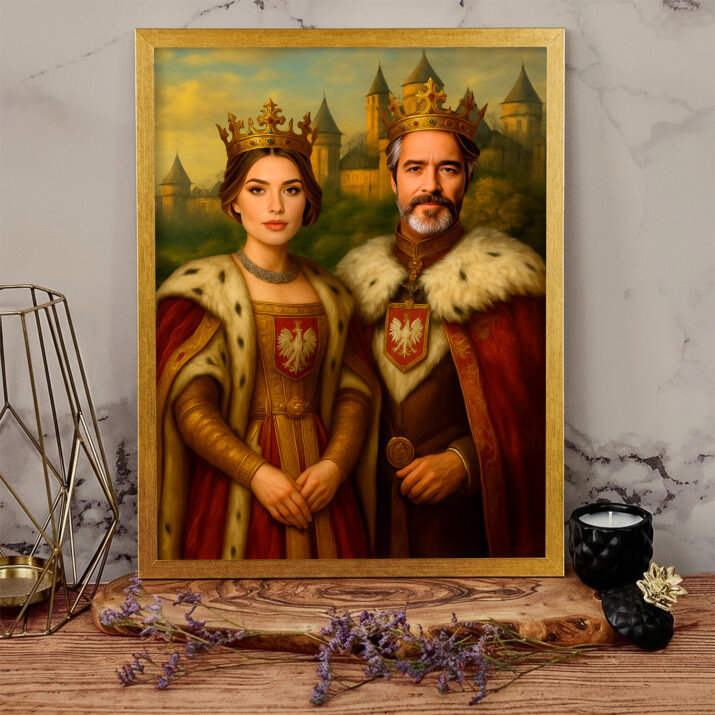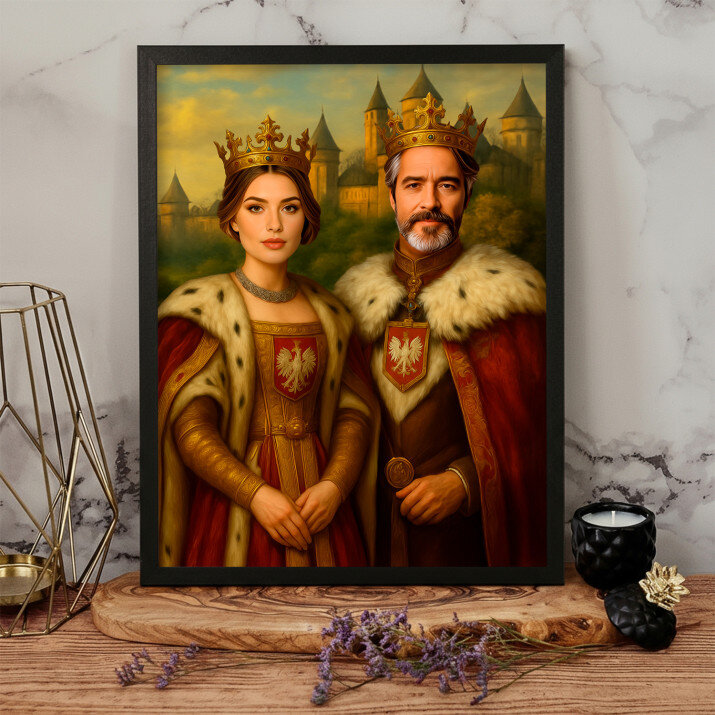 Ik ben heel blij met dit schilderij op canvas. Het koninklijk paar is niet alleen een decoratie, het is ook een symbool van elegantie en prestige.