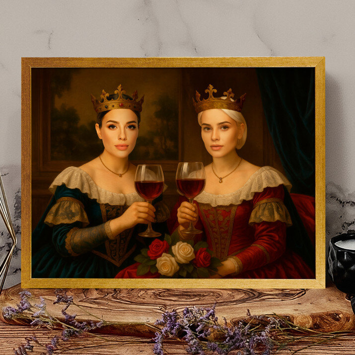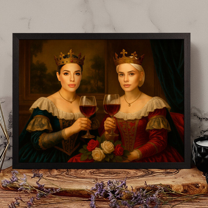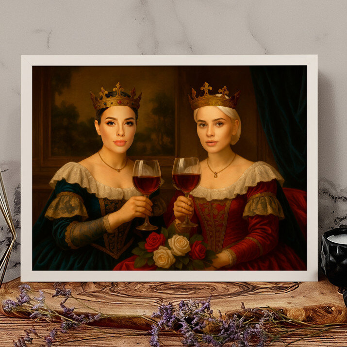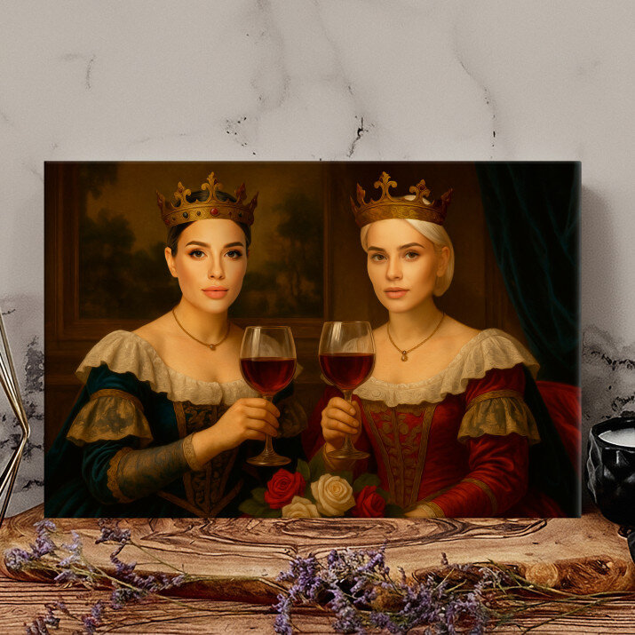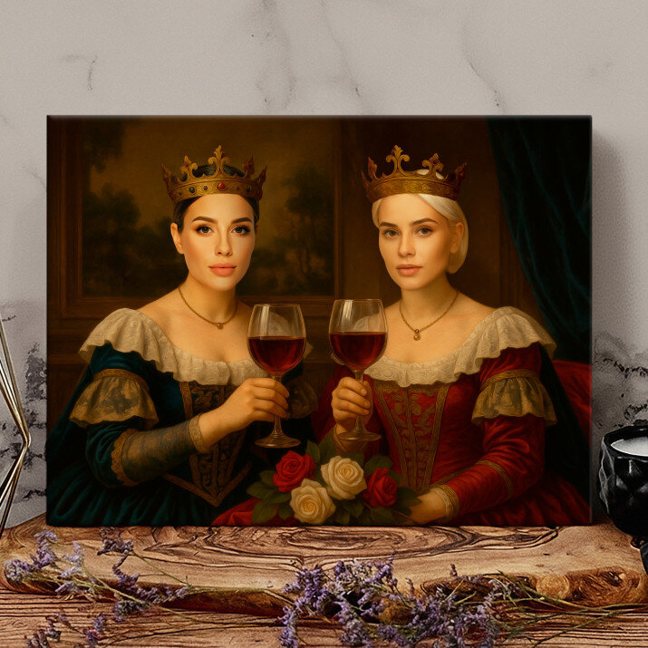 Ik ben heel blij met dit schilderij op canvas. Het koninklijk paar is niet alleen een decoratie, het is ook een symbool van elegantie en prestige.