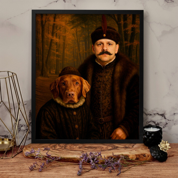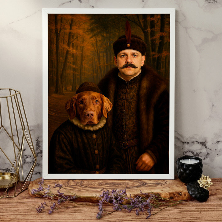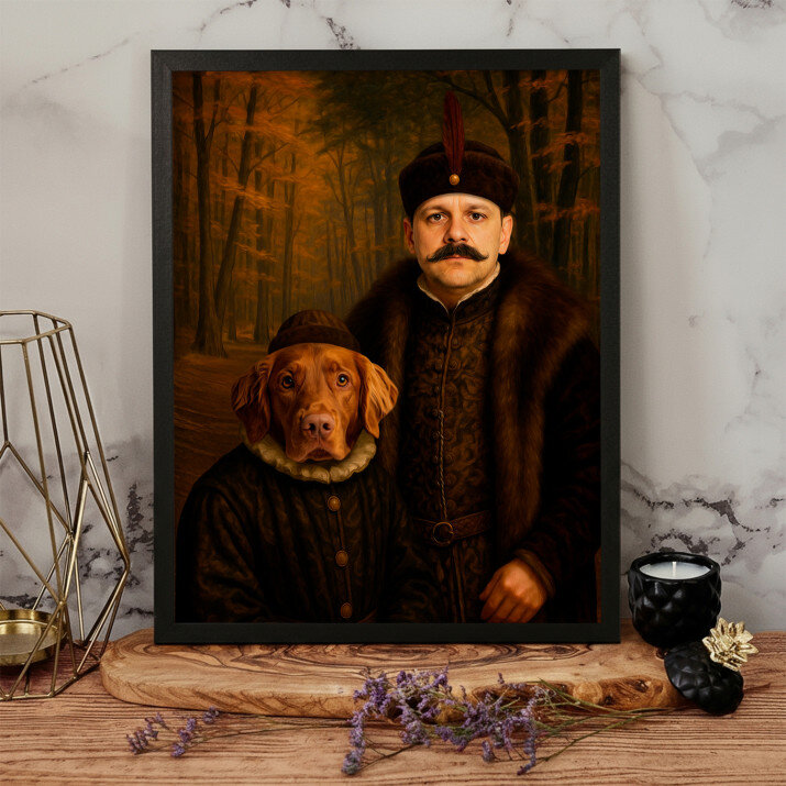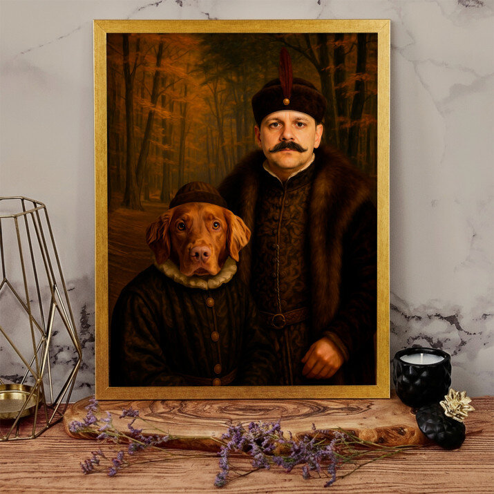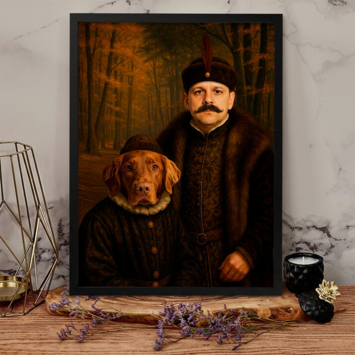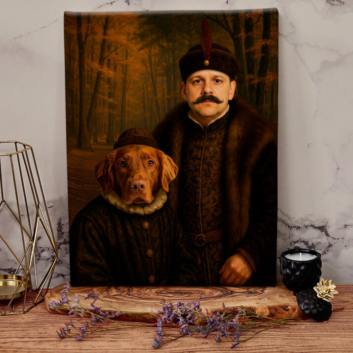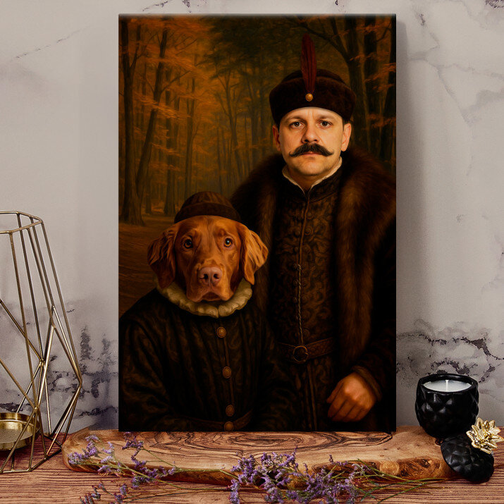 Dit is een perfecte manier om de stijl van het interieur te benadrukken. Een koninklijk portret op canvas is een prachtige decoratie die de aandacht trekt.