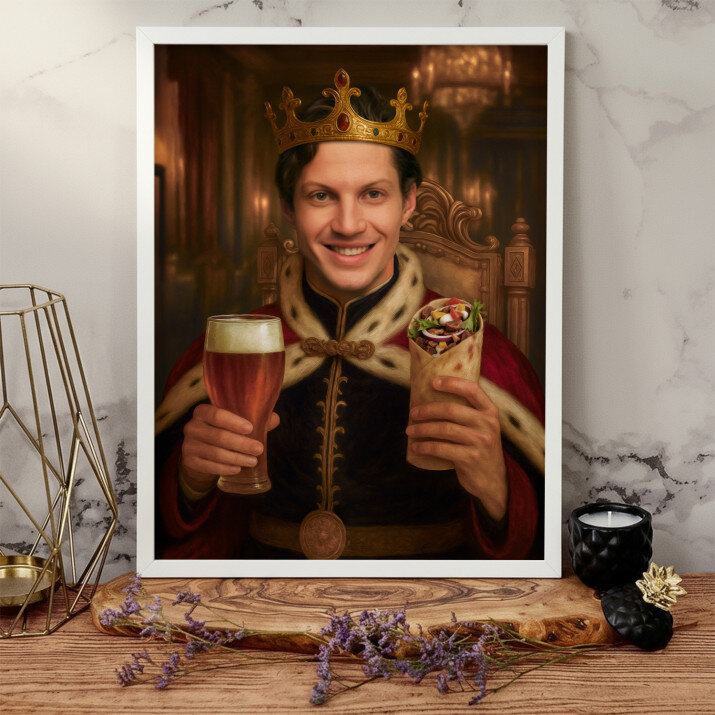 Ik ben heel blij met dit schilderij op canvas. Het koninklijk paar is niet alleen een decoratie, het is ook een symbool van elegantie en prestige.
