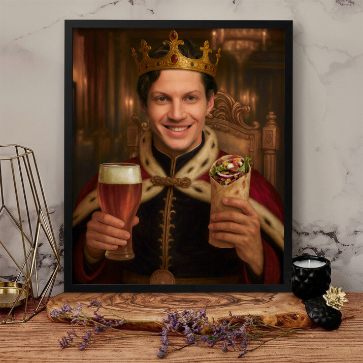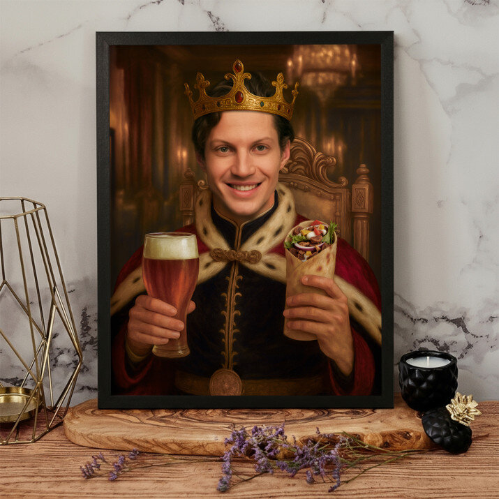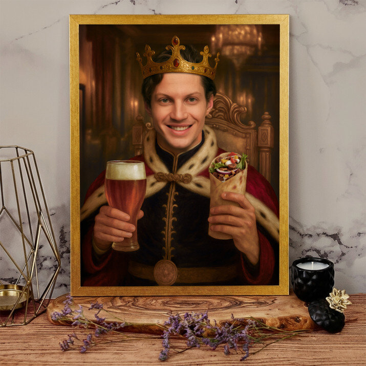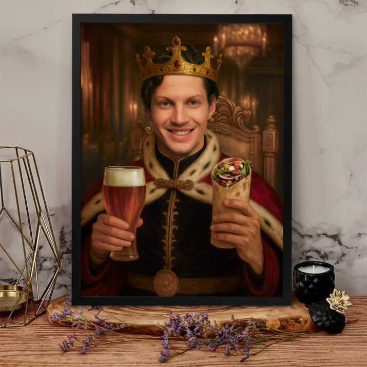 Dit is een perfecte manier om de stijl van het interieur te benadrukken. Een koninklijk portret op canvas is een prachtige decoratie die de aandacht trekt.