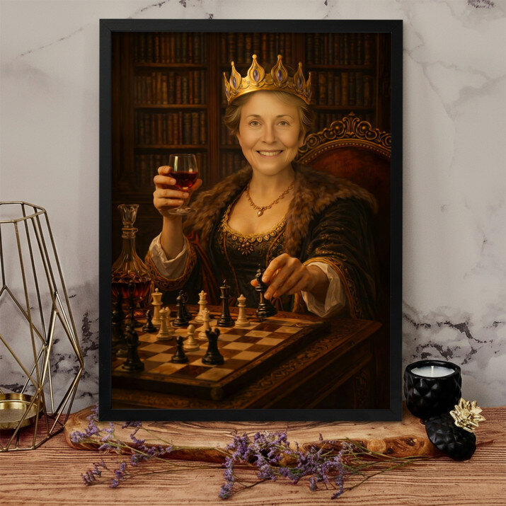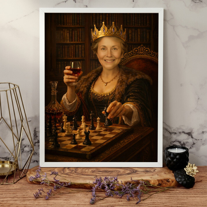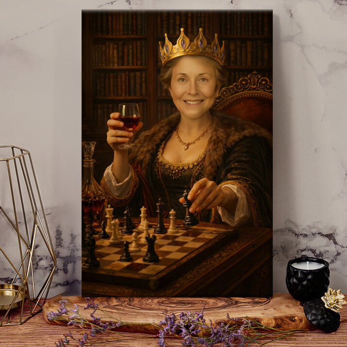 Ik ben blij met dit schilderij. De koningin op canvas ziet er fenomenaal uit en voegt elegantie toe aan ons interieur.