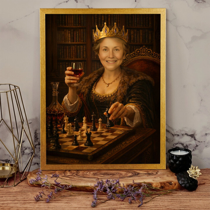 Dit is een perfecte manier om de stijl van het interieur te benadrukken. Een koninklijk portret op canvas is een prachtige decoratie die de aandacht trekt.