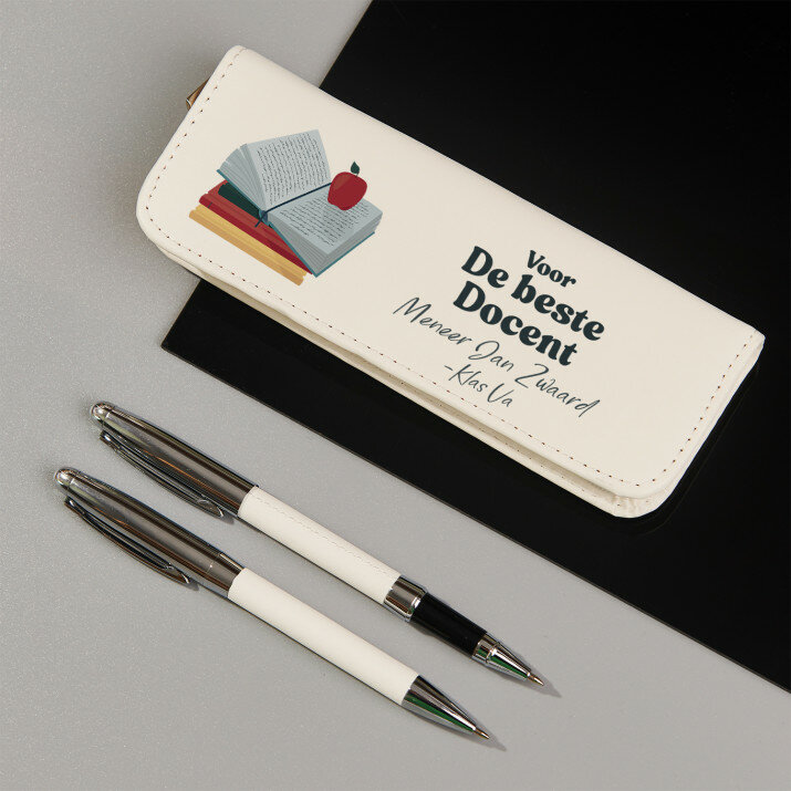 Deze schrijfset in een leren etui is een geschenk dat elke leerkracht zal waarderen. Stijl en functionaliteit in één.