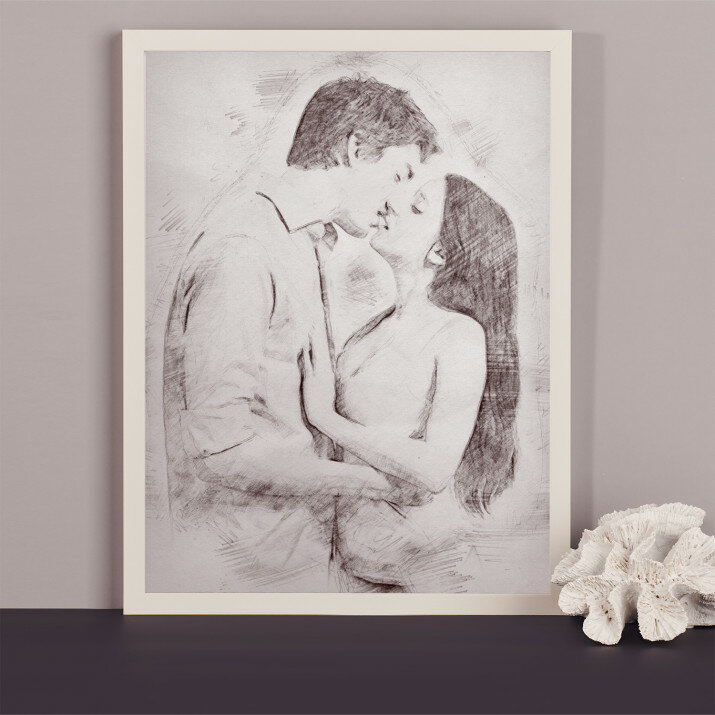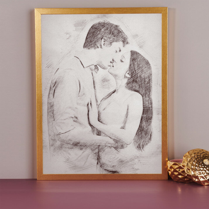 Word de ster van een Stijlvol Portret, een unieke afdruk die gemaakt wordt van een foto die jij aanlevert. Hou je van de subtiele stijl van een potloodschets? Dan vind je zeker een afdruk die bij jou past! Of misschien geef je de voorkeur aan een kleurrijke stijl geïnspireerd door olieverfschilderijen? Ook dat hebben we! We hebben een grote selectie, en met een foto van goede kwaliteit maakt onze ontwerper een professioneel ontwerp in de door jou gekozen stijl. Zodra je het ontwerp goedkeurt, creëren wij een cadeau dat indruk zal maken op je dierbaren.UITVOERING