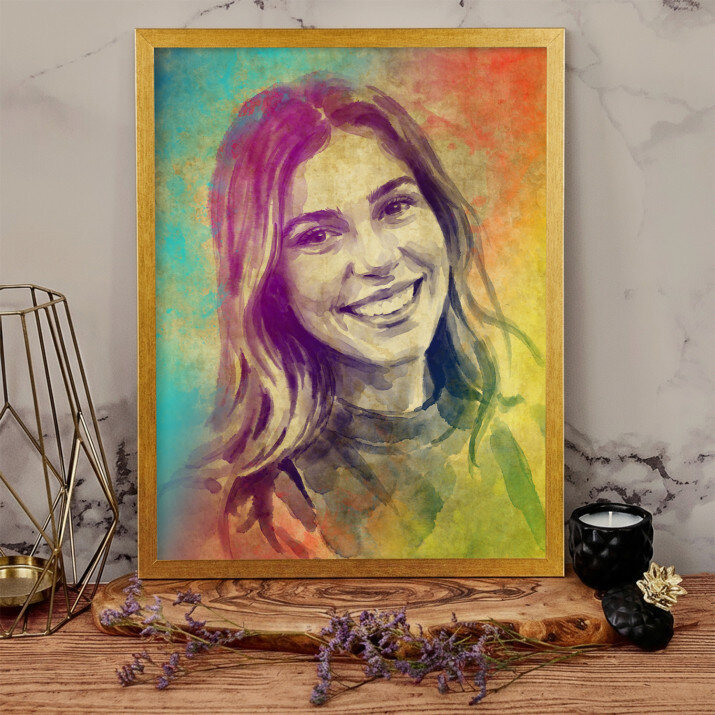 Word de ster van een Stijlvol Portret, een unieke afdruk die gemaakt wordt van een foto die jij aanlevert. Hou je van de subtiele stijl van een potloodschets? Dan vind je zeker een afdruk die bij jou past! Of misschien geef je de voorkeur aan een kleurrijke stijl geïnspireerd door olieverfschilderijen? Ook dat hebben we! We hebben een grote selectie, en met een foto van goede kwaliteit maakt onze ontwerper een professioneel ontwerp in de door jou gekozen stijl. Zodra je het ontwerp goedkeurt, creëren wij een cadeau dat indruk zal maken op je dierbaren.