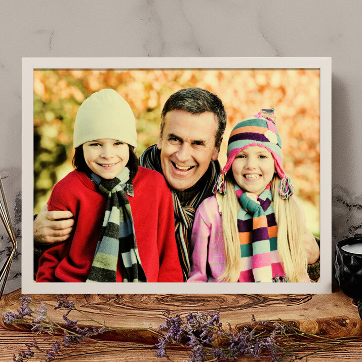 Je kunt kiezen uit 2 opties voor het eindproduct:- Een posterafdruk op fotopapier ingelijst in een lijst van 30 x 40 cm in de kleuren zwart, wit of goud