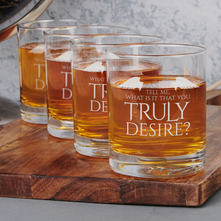 Het personaliseren van whiskyyglazen is heel eenvoudig – vul de verplichte velden in met jouw eigen idee, klik op de knop "toevoegen aan winkelwagen" en plaats je bestelling, die binnen enkele dagen bij je thuis zal zijn!