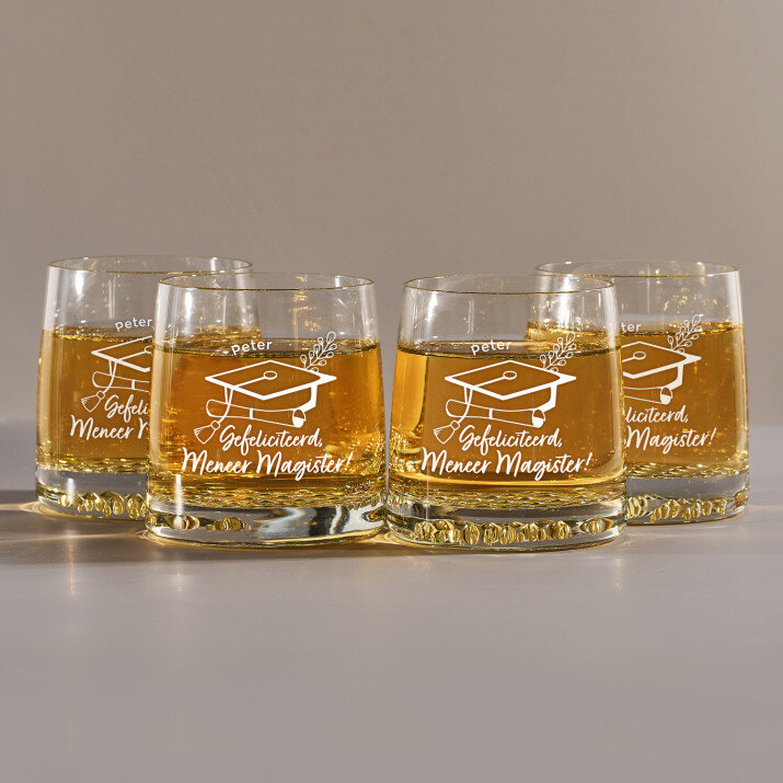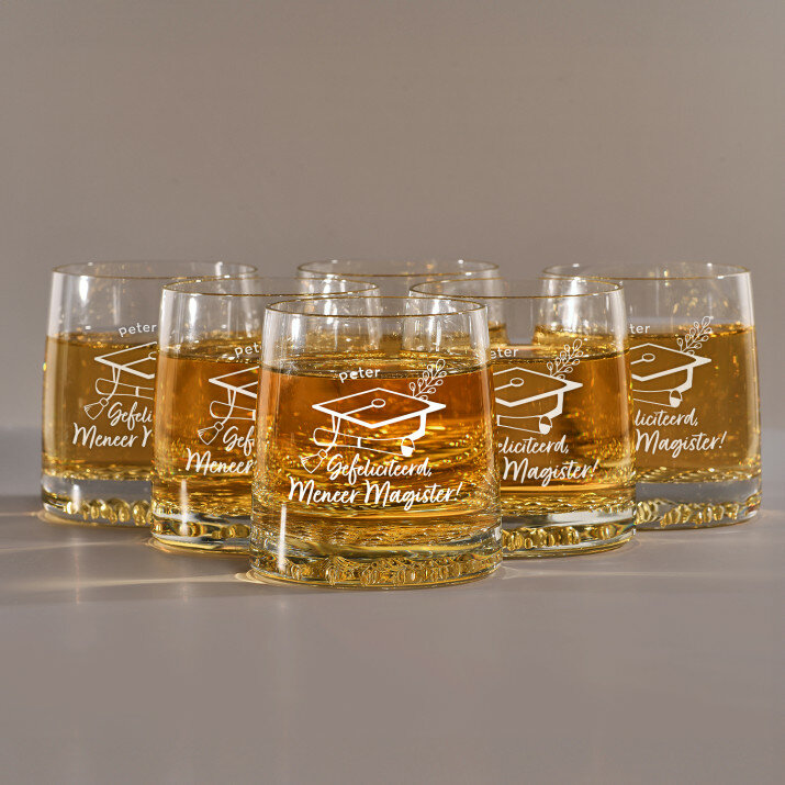 Het personaliseren van whiskyyglazen is heel eenvoudig – vul de verplichte velden in met jouw eigen idee, klik op de knop "toevoegen aan winkelwagen" en plaats je bestelling, die binnen enkele dagen bij je thuis zal zijn!