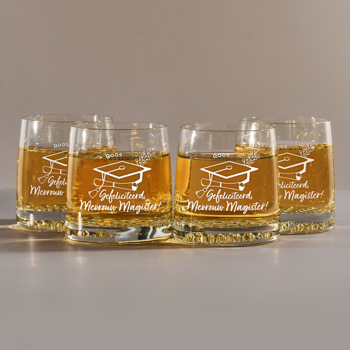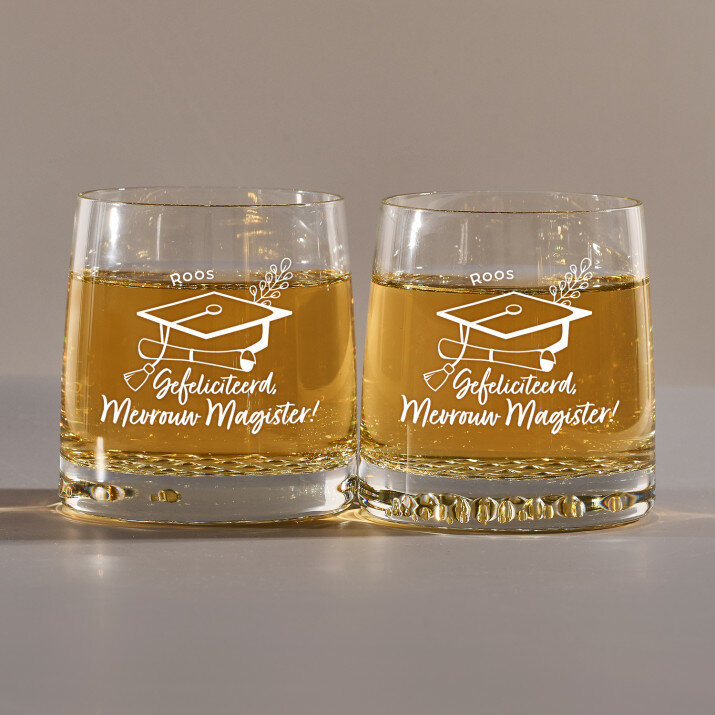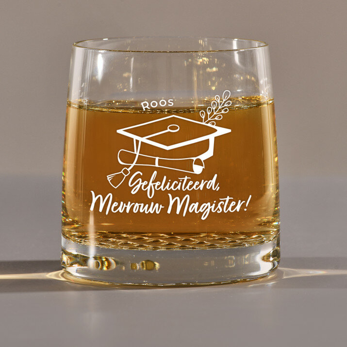 Ik ben blij met dit glas. Perfect als cadeau voor een afgestudeerde. De tekst Gefeliciteerd, mevrouw Magister geeft het een uniek karakter en het glas is massief.