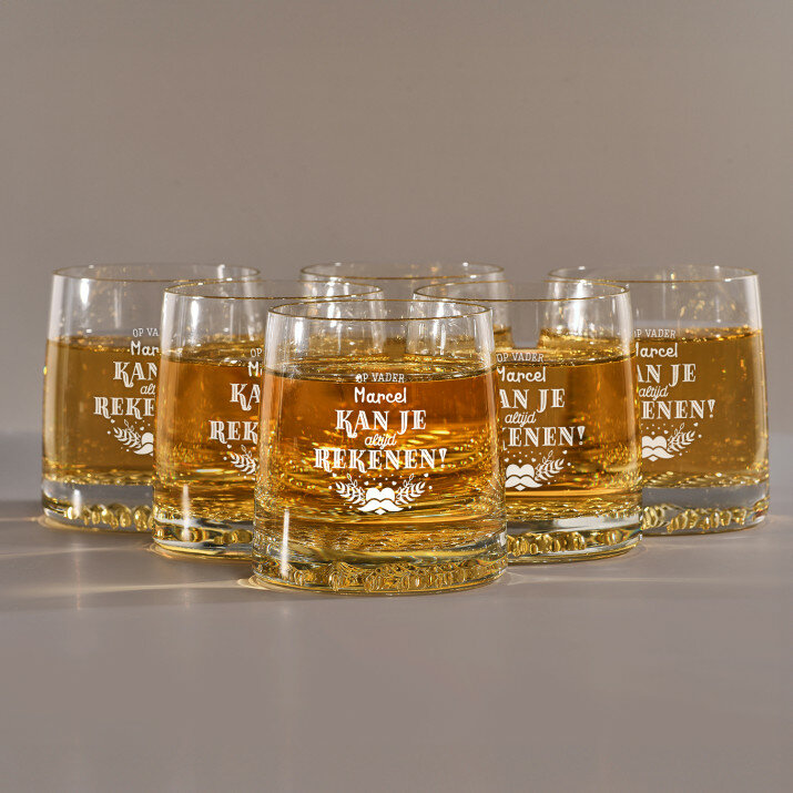 Het personaliseren van whiskyyglazen is heel eenvoudig – vul de verplichte velden in met jouw eigen idee, klik op de knop "toevoegen aan winkelwagen" en plaats je bestelling, die binnen enkele dagen bij je thuis zal zijn!
