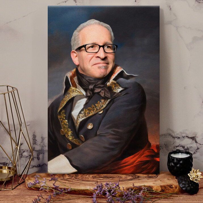 Portret van een generaal is een geweldige keuze voor liefhebbers van geschiedenis. Het zwarte frame geeft hem nog meer prestige.