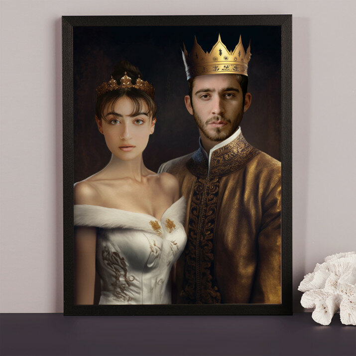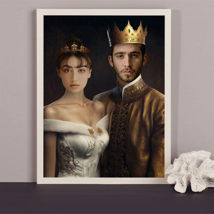 Word de ster van een Koninklijk Portret – een unieke print die we maken op basis van jouw aangeleverde foto. Dit is een bijzonder cadeau waarmee je dierbare zich als een echte vorst zal voelen! Het enige wat je nodig hebt, is een foto van goede kwaliteit. Onze grafisch ontwerper maakt vervolgens een portret in de stijl van jouw keuze. Een cadeau dat gegarandeerd indruk maakt!UITVOERING