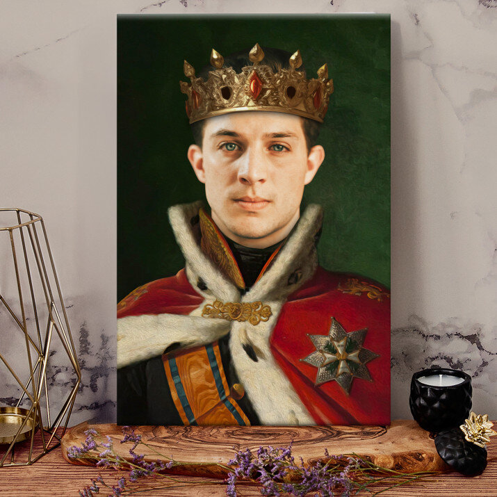 Word de ster van een Koninklijk Portret – een unieke print die we maken op basis van jouw aangeleverde foto. Dit is een bijzonder cadeau waarmee je dierbare zich als een echte vorst zal voelen! Het enige wat je nodig hebt, is een foto van goede kwaliteit. Onze grafisch ontwerper maakt vervolgens een portret in de stijl van jouw keuze. Een cadeau dat gegarandeerd indruk maakt!UITVOERING