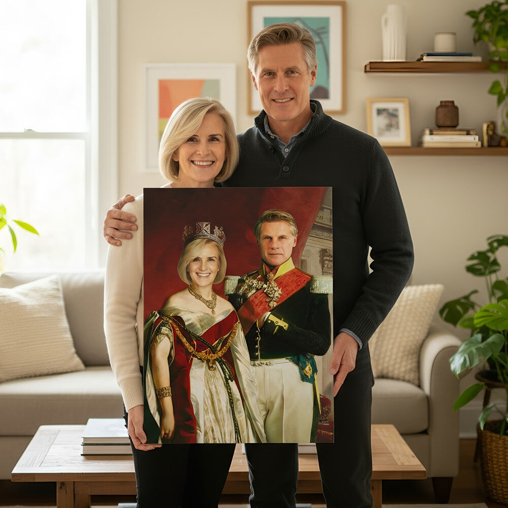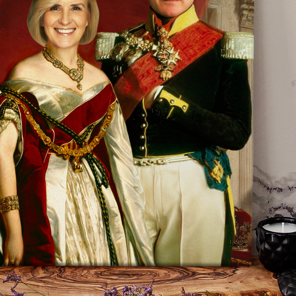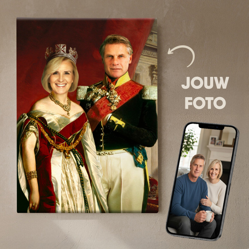 Het schilderij op doek Het Koninklijk Paar is een echt kunstwerk. Het unieke ontwerp en de kwaliteit van de afwerking zijn indrukwekkend.