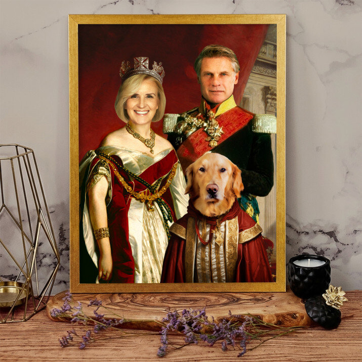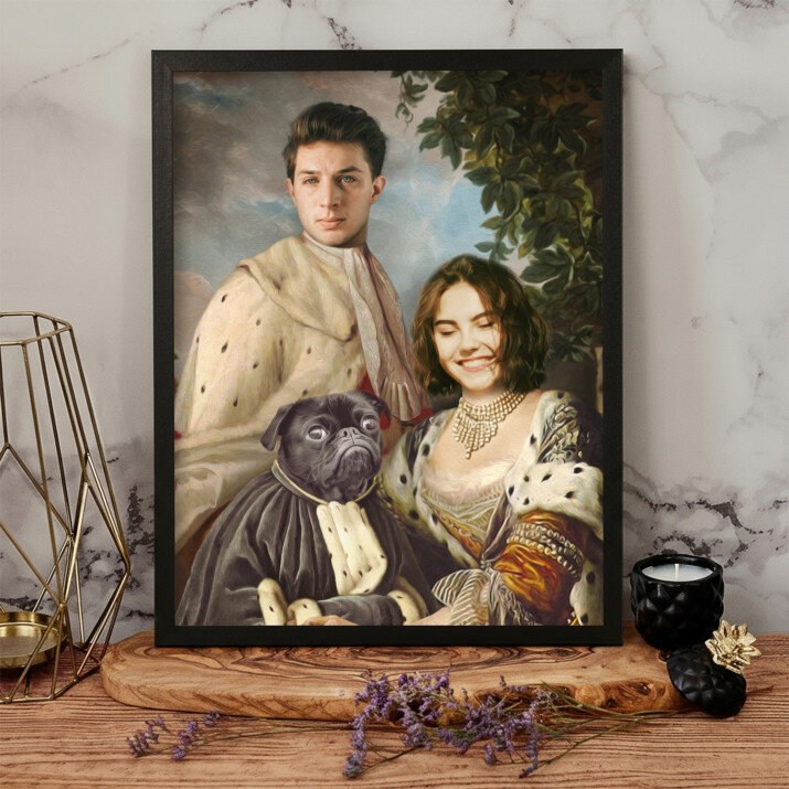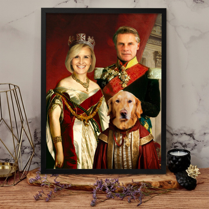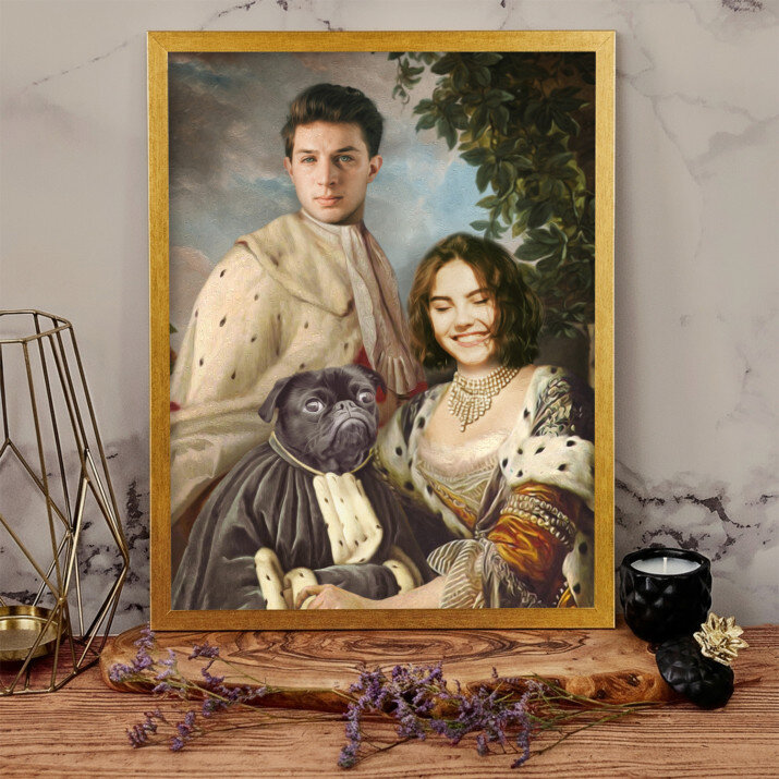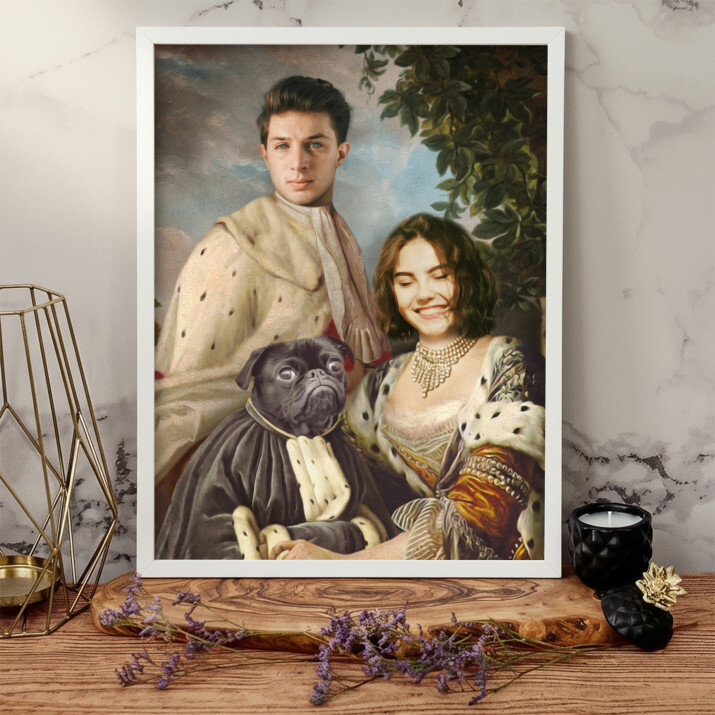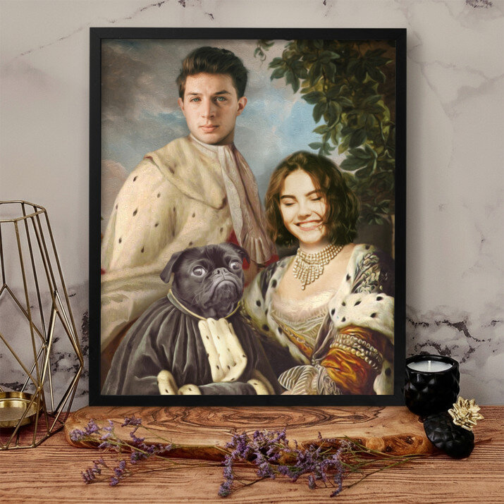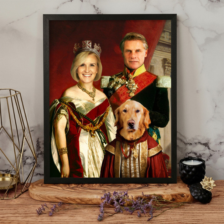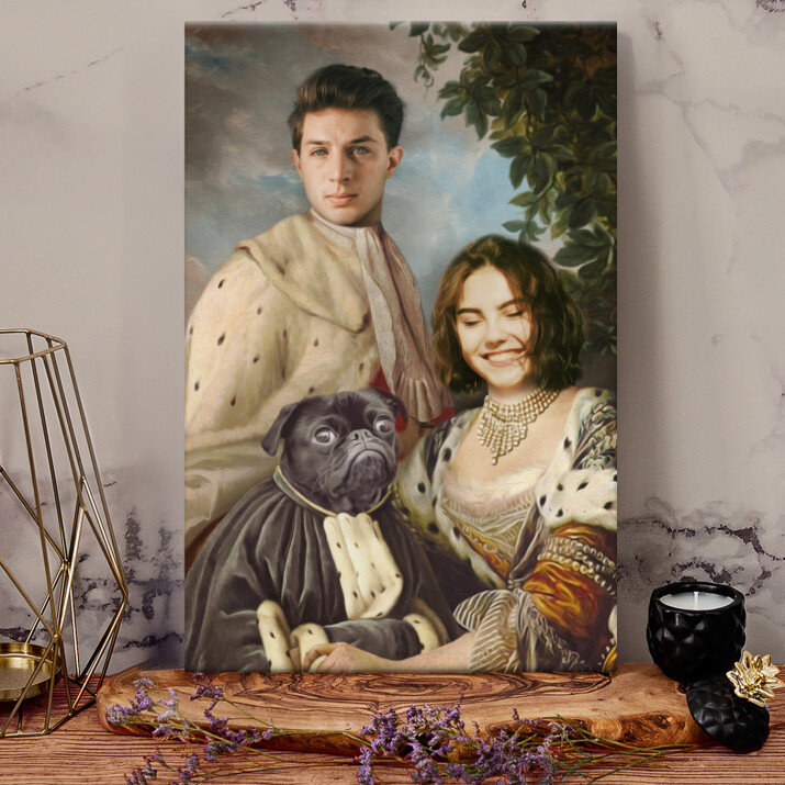 De canvas print 'Koninklijk paar met huisdier' is een prachtige decoratie. Het unieke ontwerp en de kwaliteit van de afwerking zijn adembenemend.