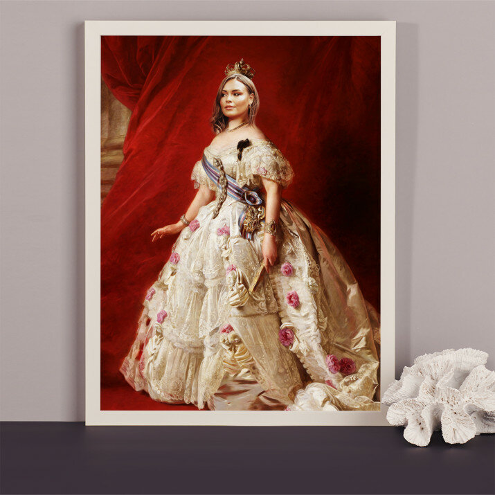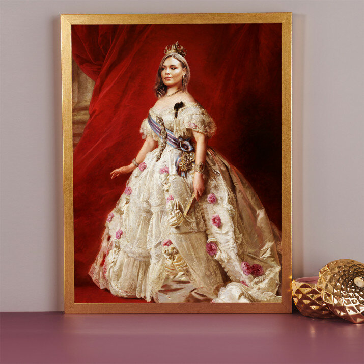 Word de ster van een Koninklijk Portret – een unieke print die we maken op basis van jouw aangeleverde foto. Dit is een bijzonder cadeau waarmee je dierbare zich als een echte vorst zal voelen! Het enige wat je nodig hebt, is een foto van goede kwaliteit. Onze grafisch ontwerper maakt vervolgens een portret in de stijl van jouw keuze. Een cadeau dat gegarandeerd indruk maakt!UITVOERING