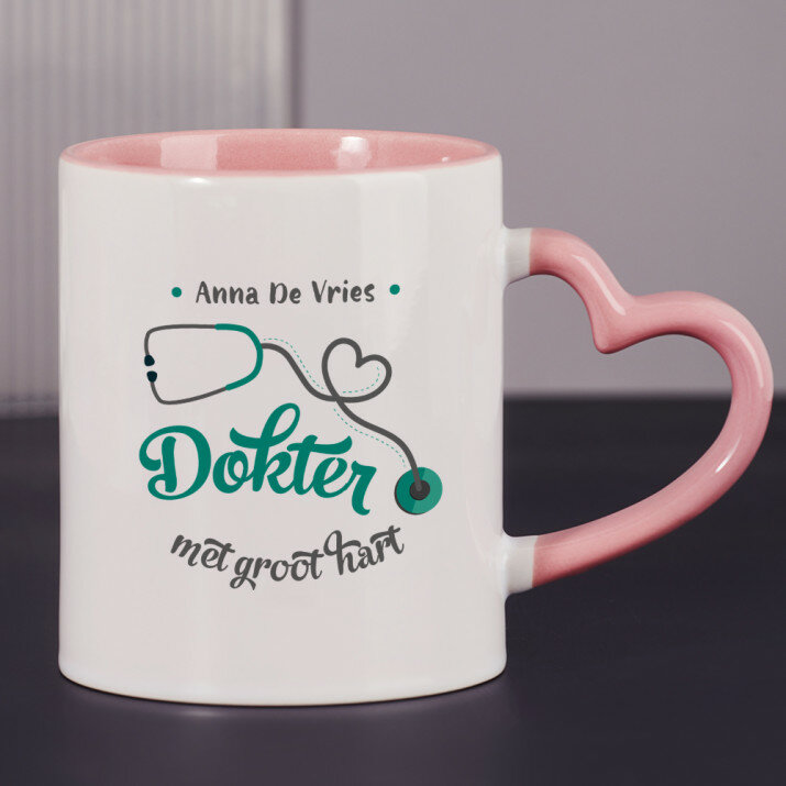 Er zijn ook mokken met een hartvormig handvat en een roze binnenkant, met een inhoud van 330 ml