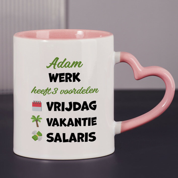 Er zijn ook mokken met een hartvormig handvat en een roze binnenkant, met een inhoud van 330 ml