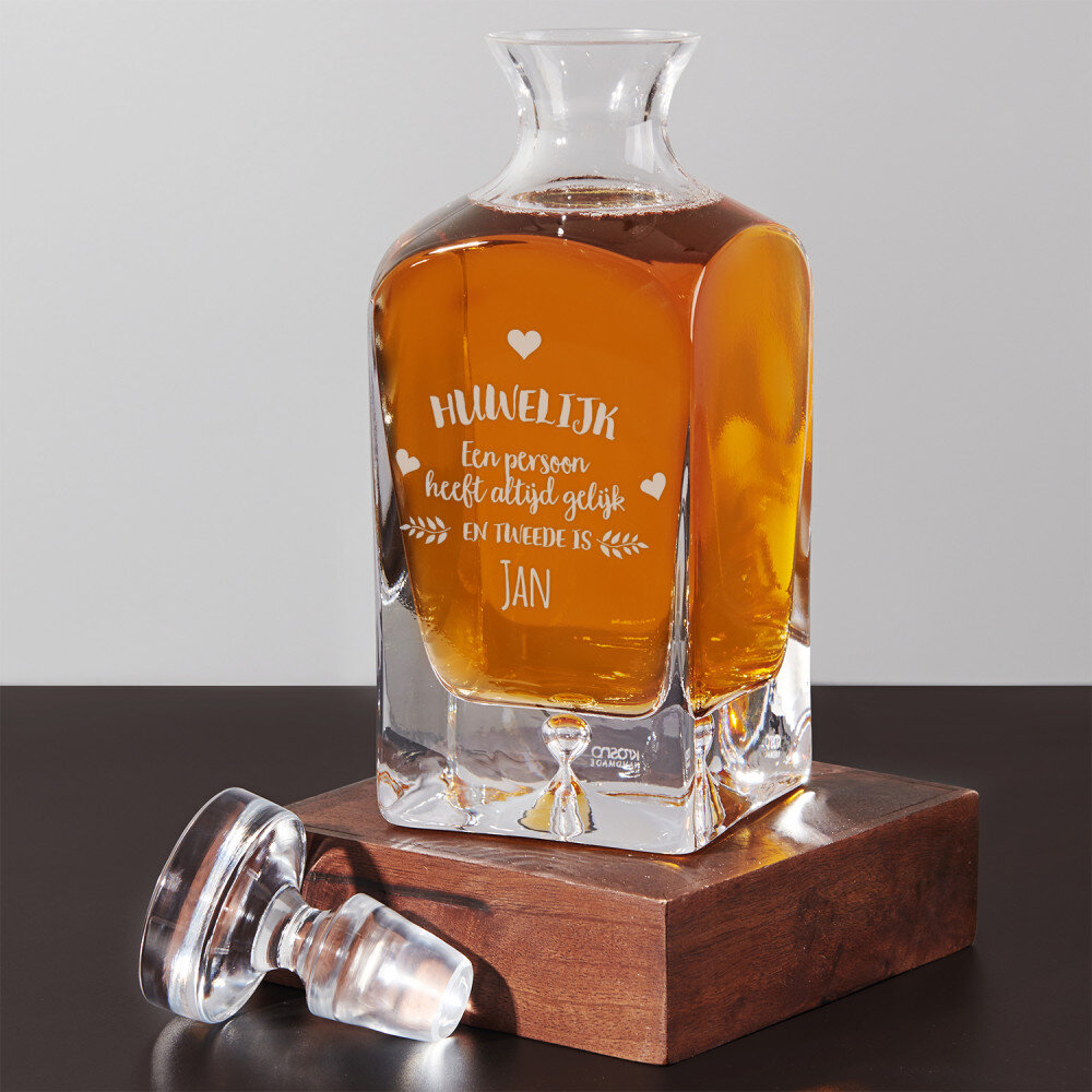 Om de karaf te personaliseren, vul je gewoon de vereiste velden in en klik je op "Toevoegen aan winkelwagen". Onze grafisch vormgevers zorgen voor de rest!