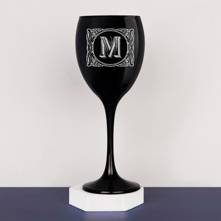 Zwart wijnglas – hoogte: 21,5 cm