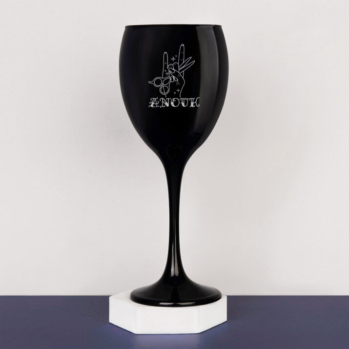 Zwart wijnglas – hoogte: 21,5 cm